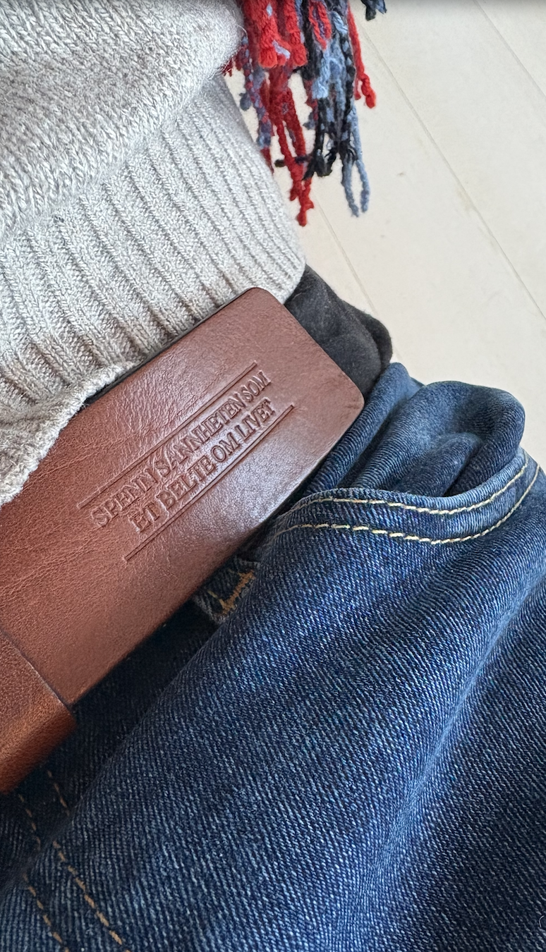Ble utsolgt opptil flere ganger i løpet av høstens turné. 100% lær, produsert i Italia. Påtrykt «Spenn sannheten som et belte om livet» (Ef. 6.14) på utsiden, logo på innsiden. Konjakkfarget/brunt. Beltet er festet til spennen med skrue og kan enkelt kuttes til ønsket lengde.